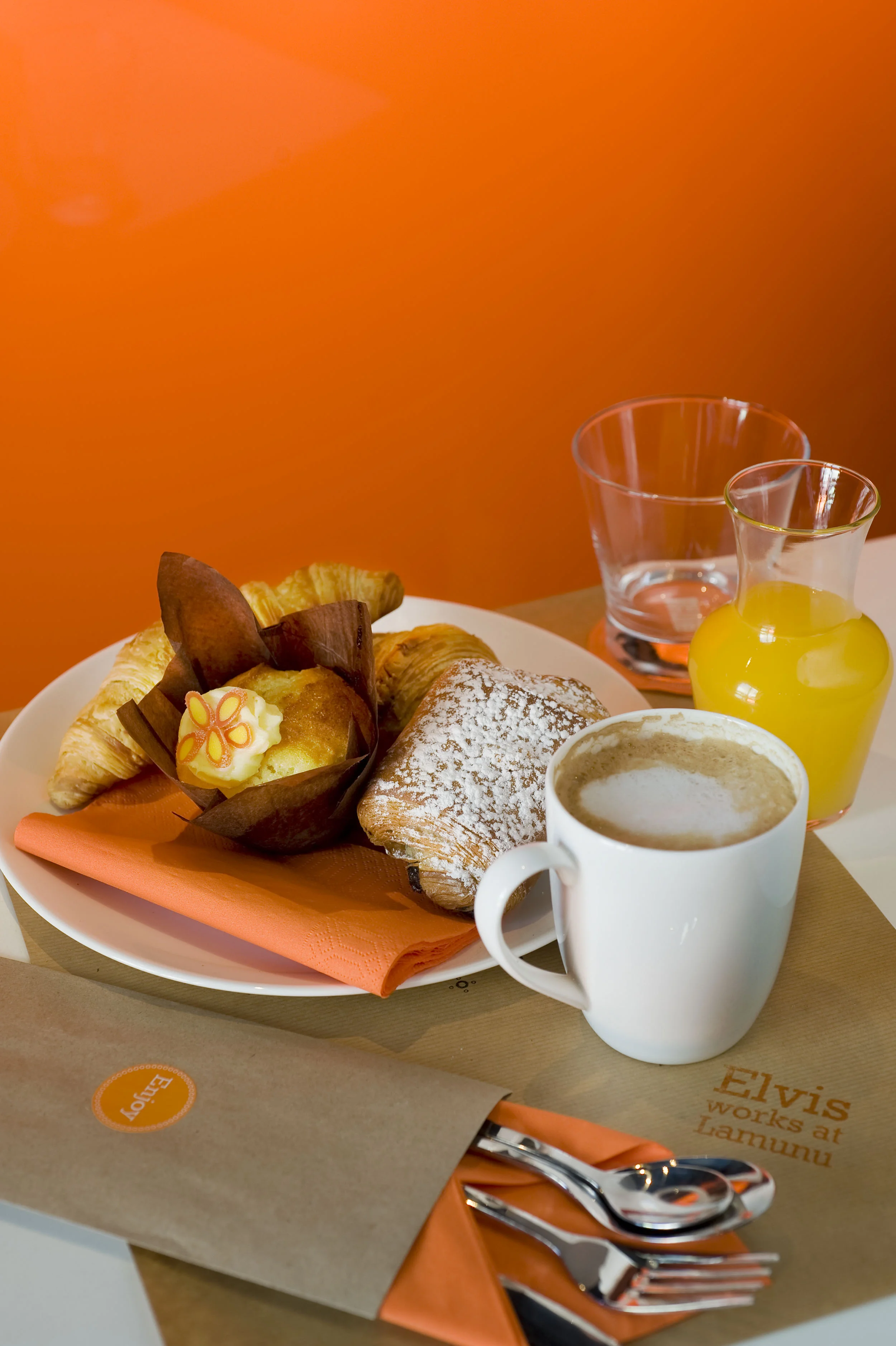 We drew inspiration from the hustle and bustle of the city, the youthful energy of the university and the fast-paced nature of a business hotel. The hospitality concept centred on grab and go, quick meals served in innovative ways. “Lamunu” means orange and this formed the basis of our accessories, uniforms and concepts.