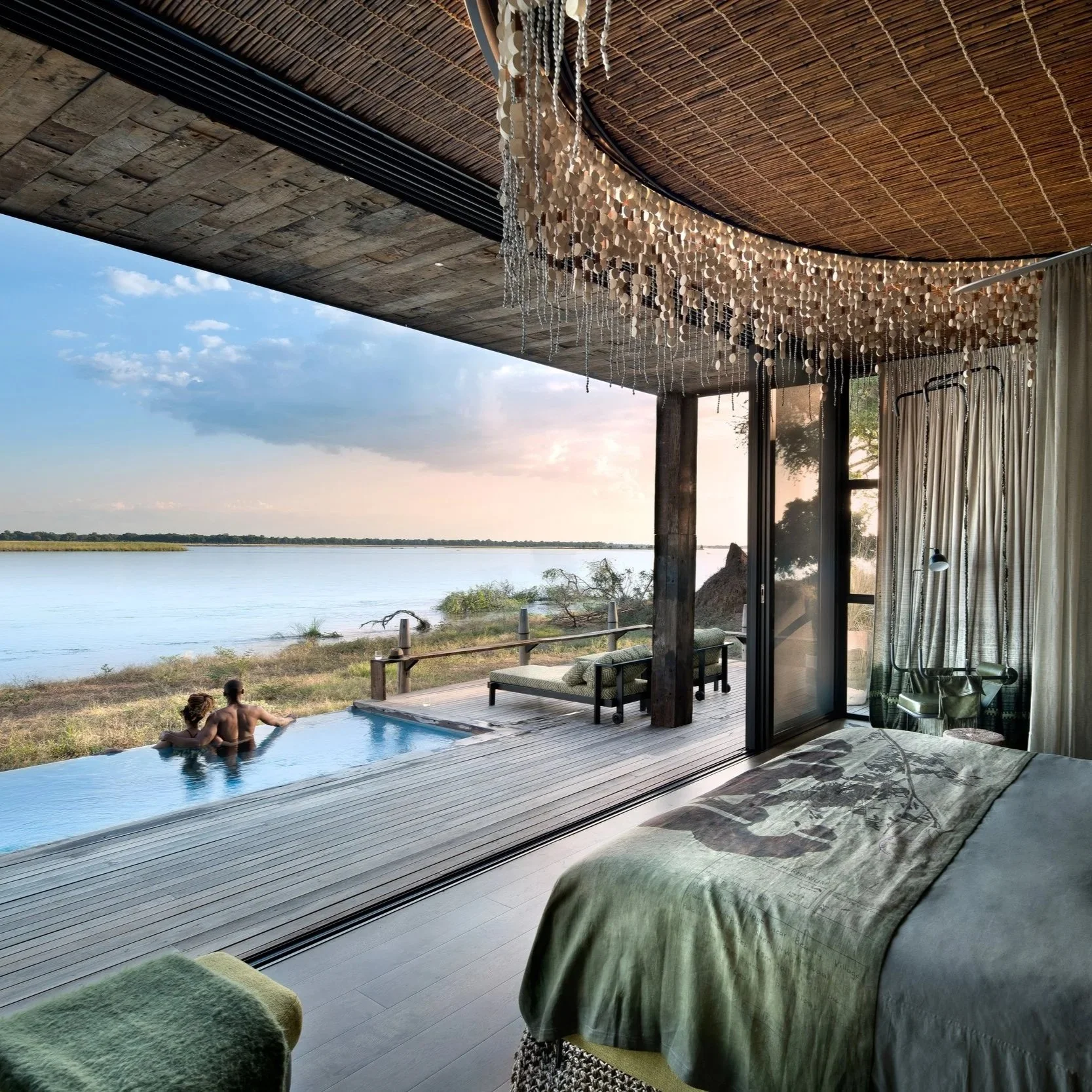 The result is a completely immersive guest experience in one of Africa’s best locations, unparalleled by any other lodge on the Zambezi river. A fresh take on luxury safari lodge design, effortlessly combining sophistication and sustainability with a sense of place. Every detail has been considered for guest comfort and a dramatic connection with the river and the African landscape.