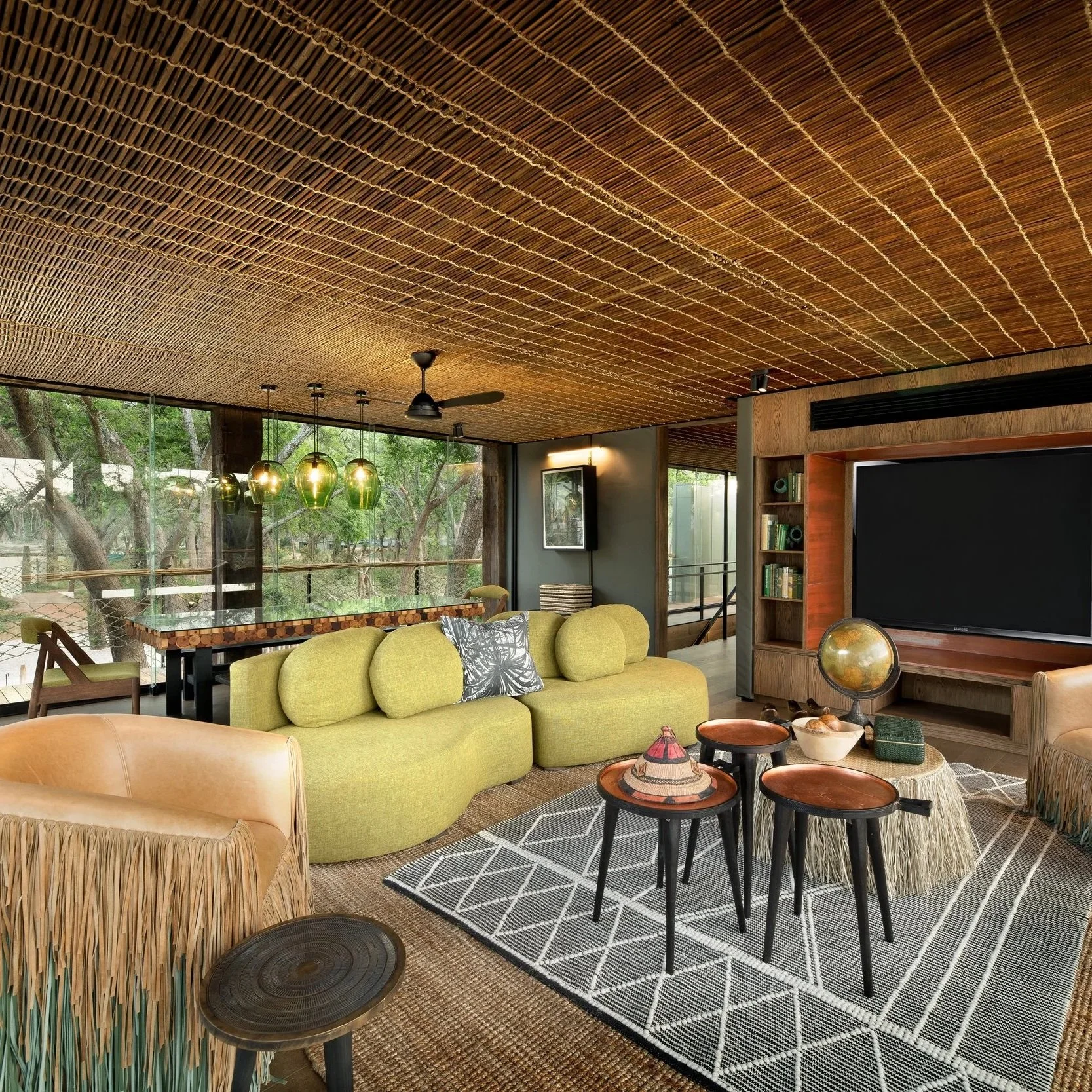 The design takes its cue from the rise and fall of the river, the generous shade of the Winterthorn forest and the challenge of two distinct and very different seasons. The river informed not only the name of the lodge, but also the understated adaption of the lodge’s modernist forms; twisting and bending architectural elements upon themselves, balancing traditional bush-lodge materials such as grass thatch, reeds, canvas and hardwood with contemporary, sophisticated structural steel and glass.